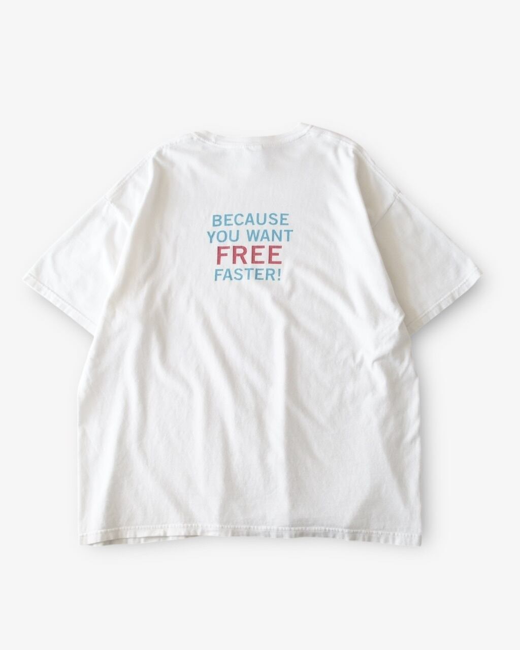 ポップな雰囲気に企業モノの独特さがマッチしているデザイン。配色が淡いカラーリングで夏に着用したい一枚です。