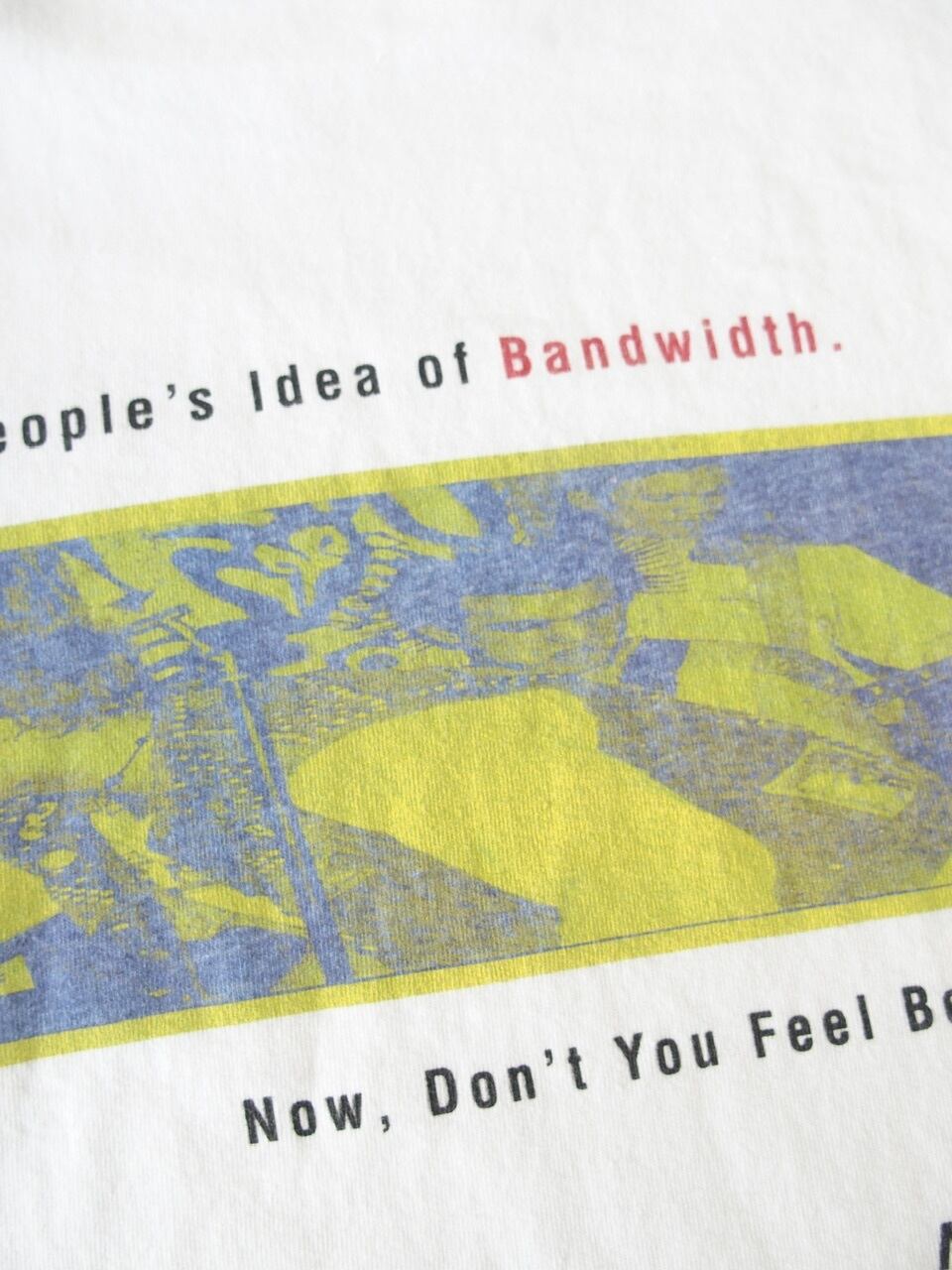 胸にネットワーク図、背面にポップアートと"これが多くの人の考える帯域幅。ほら、もう気分が良くなったでしょう?"というユーモラスなコピーをプリント。