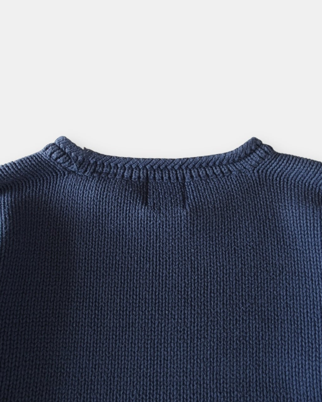 淡いネイビーのコットンニット。