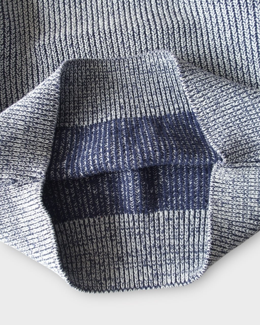 ブルーパープルとホワイトで編まれたコットンニット。写真では伝わりづらいですが、