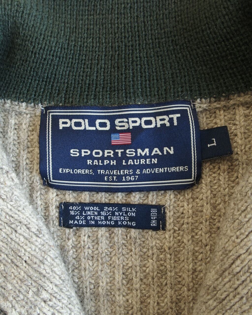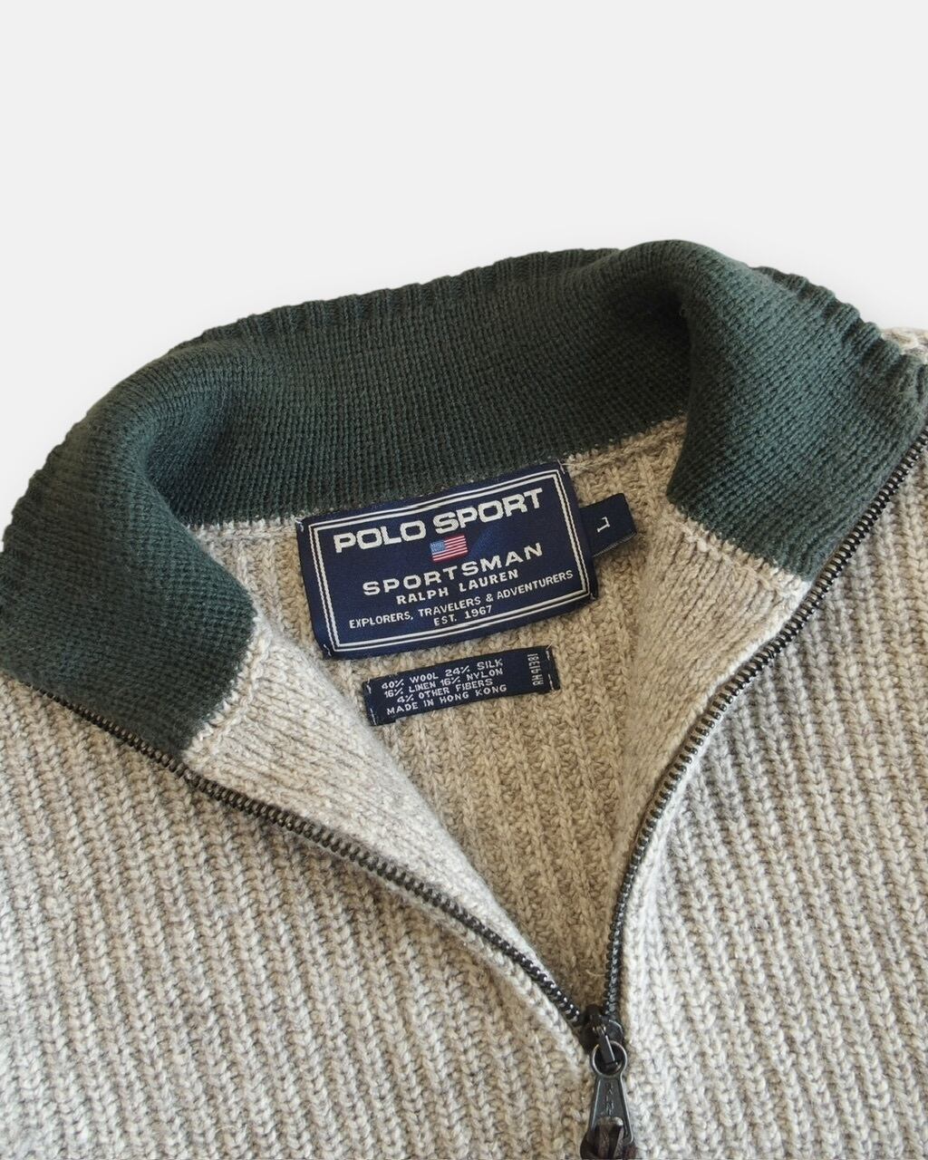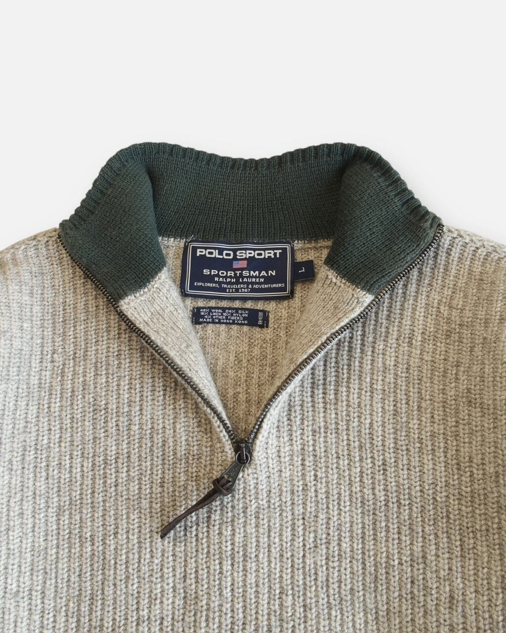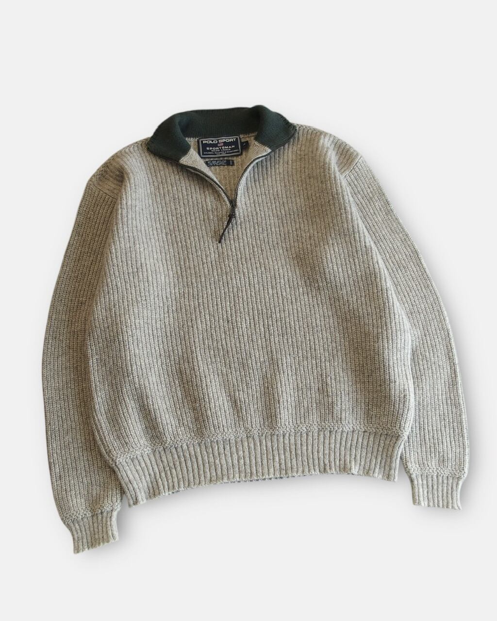 ポロスポーツの配色良しなハーフジップニット。ウール、シルク、リネンメインで作られている上品で肌馴染みな良い一枚。