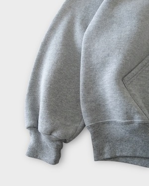 グレーの無地フーディ。
