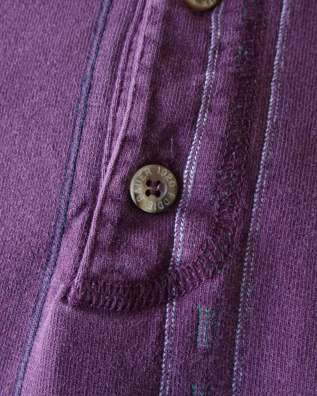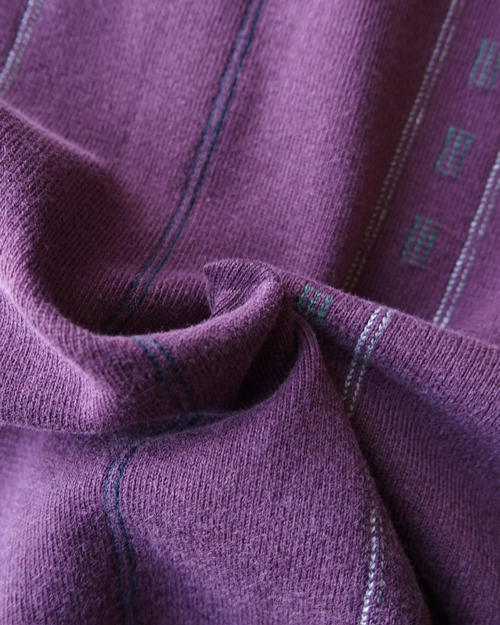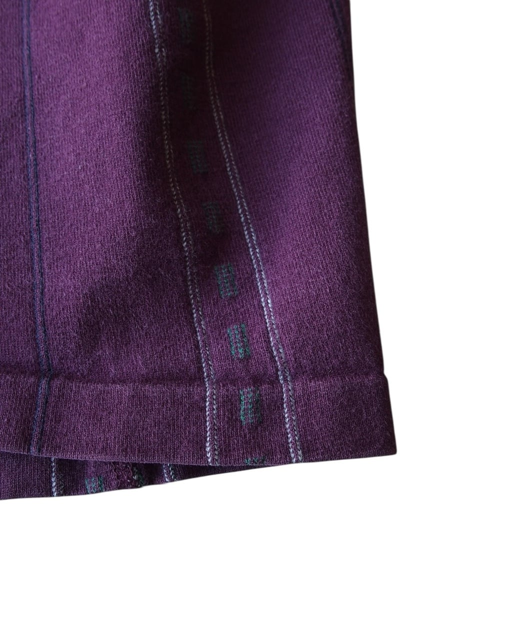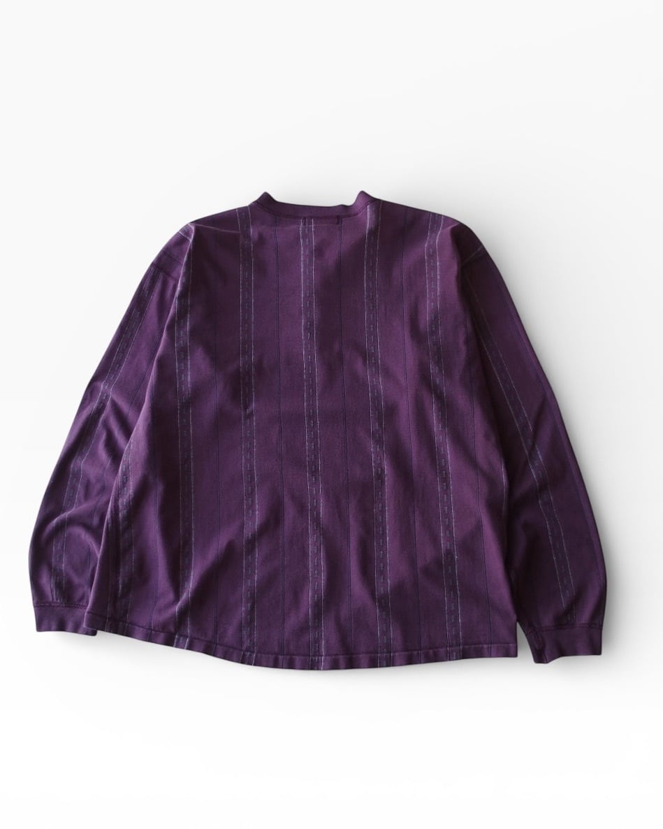 パープルを基調にした縦ストライプと織り柄が、無地とは違った雰囲気でより玄人向けなロンTになっております。