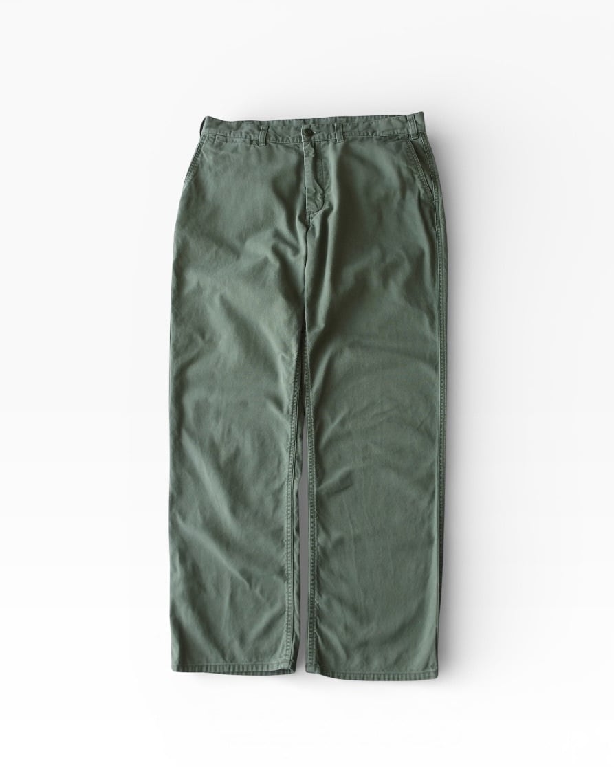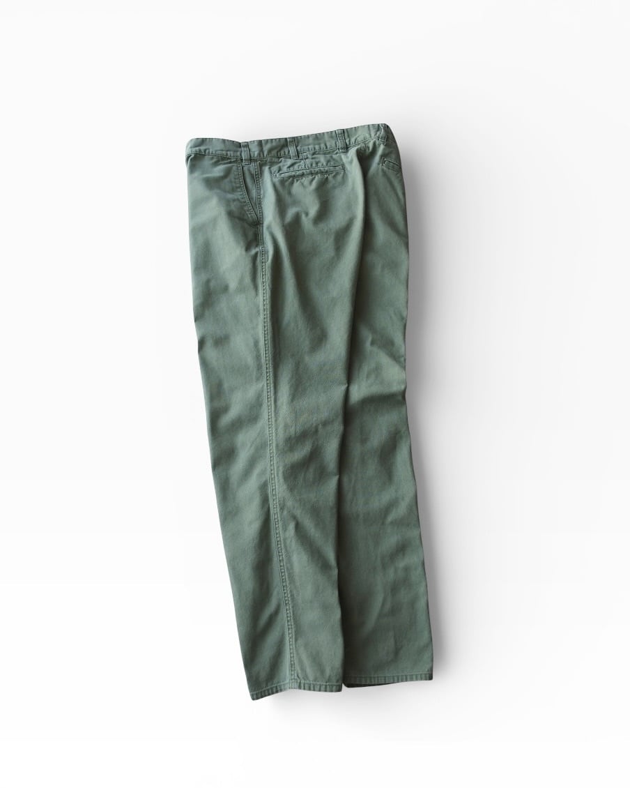 爽やかなグリーンのオーガニックコットンパンツ。