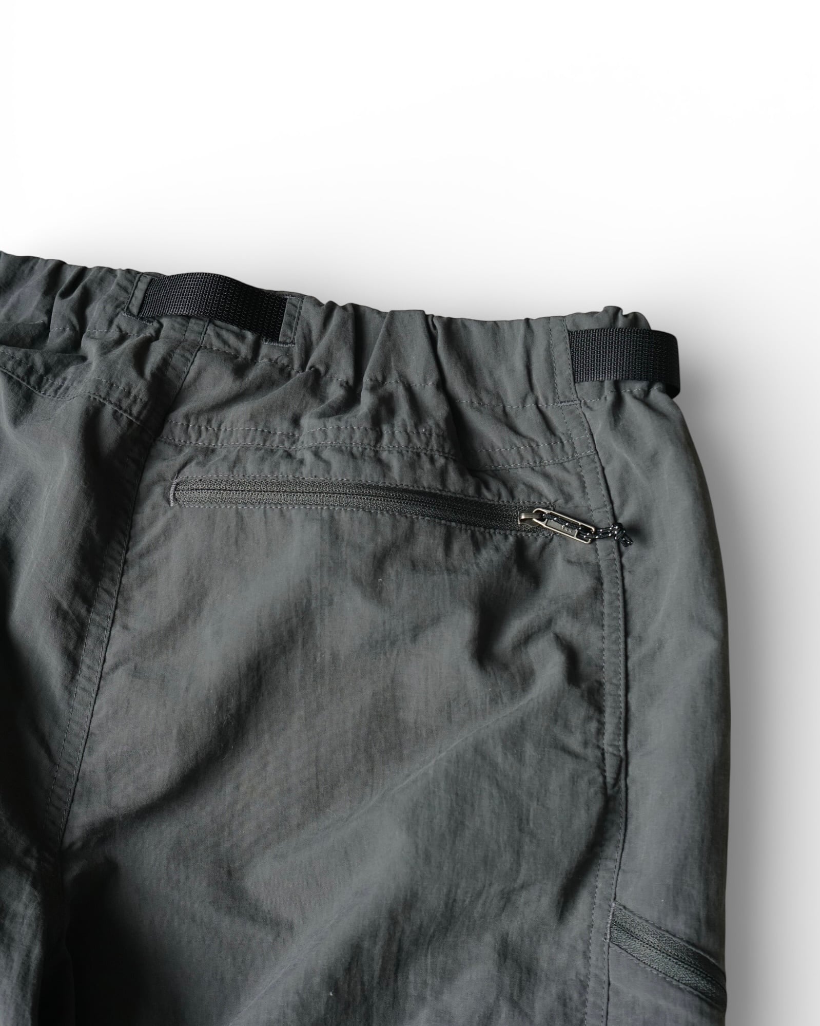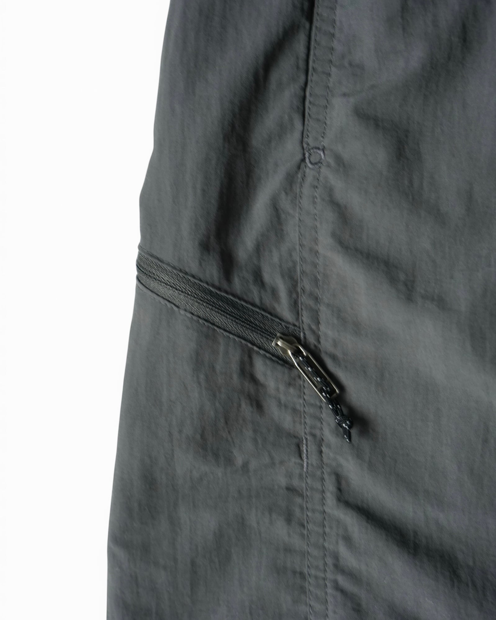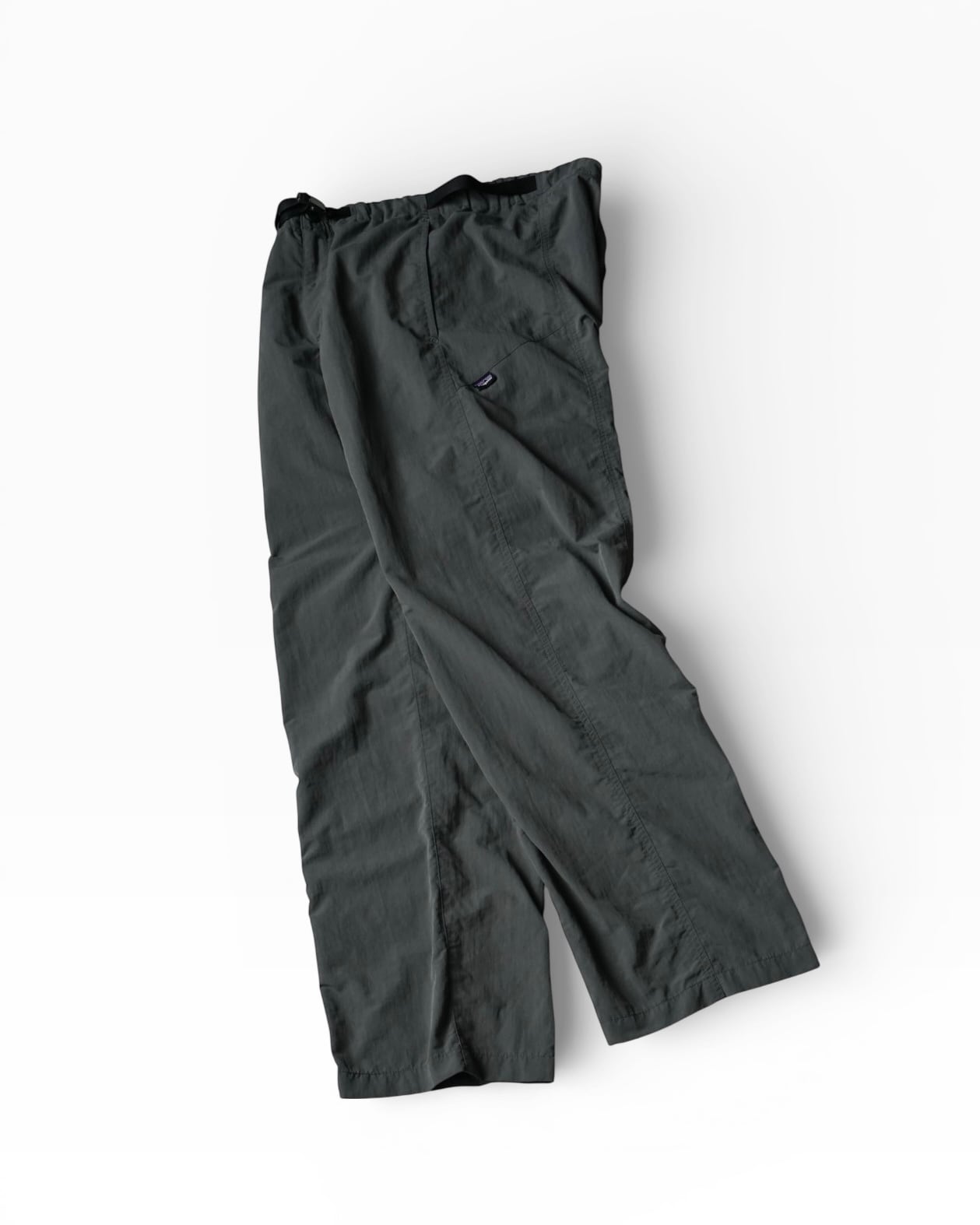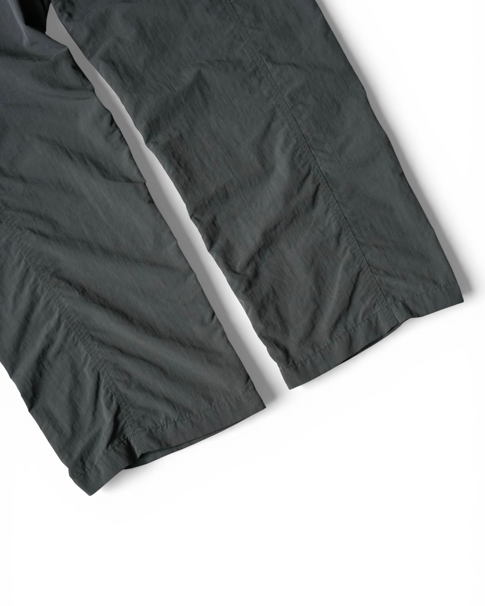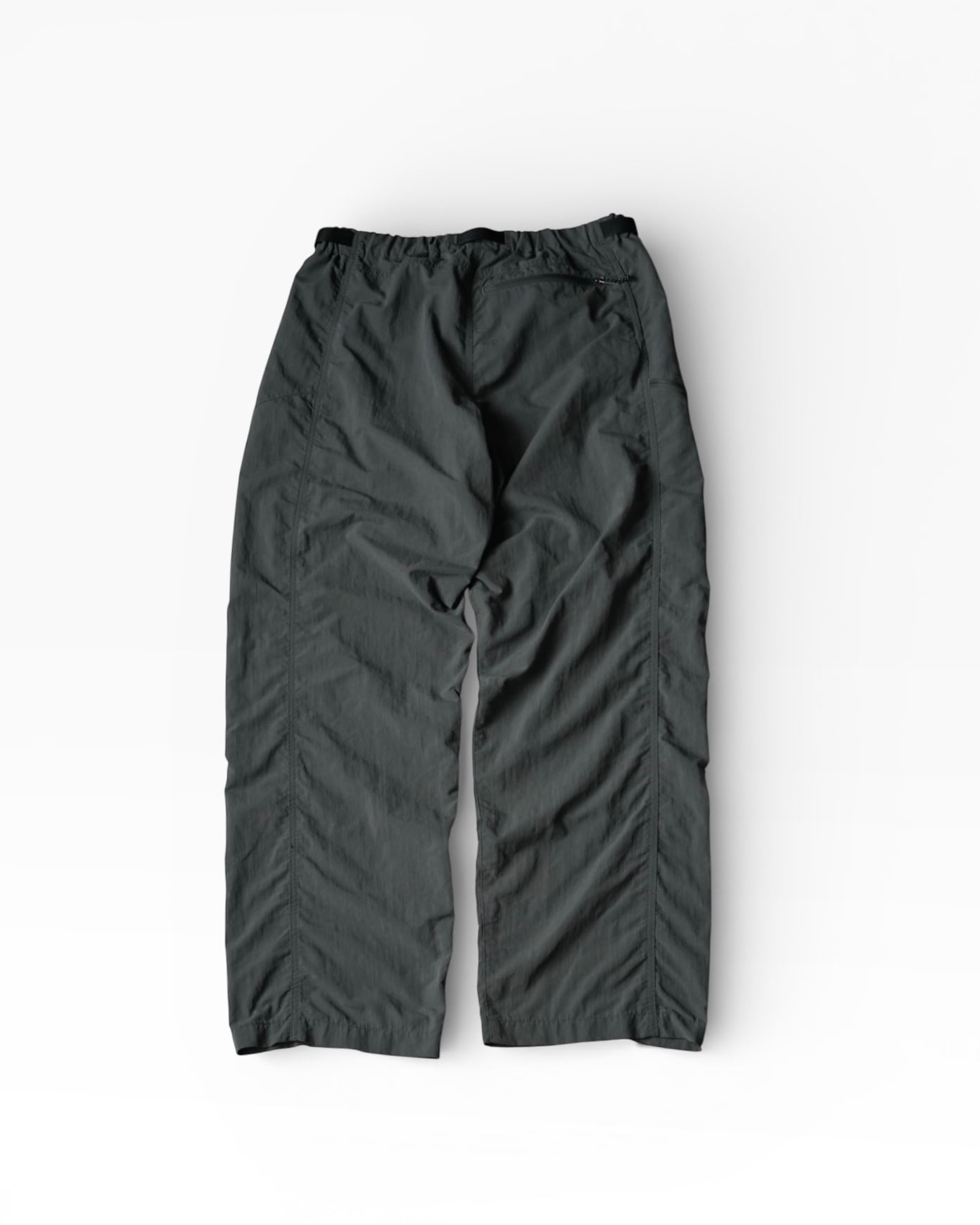 濃いグレーのバギーパンツ。