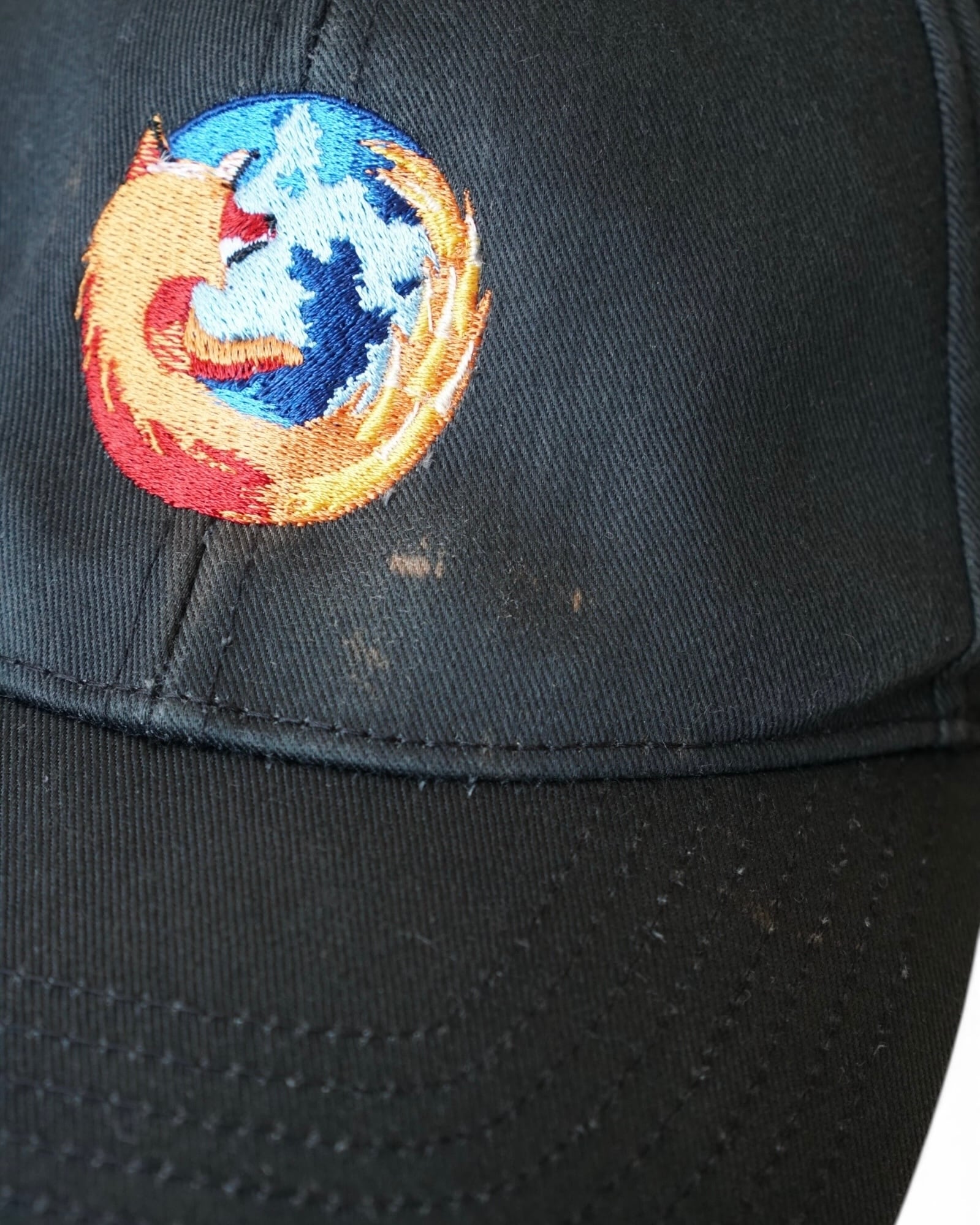 Firefoxのロゴ刺繍キャップ。