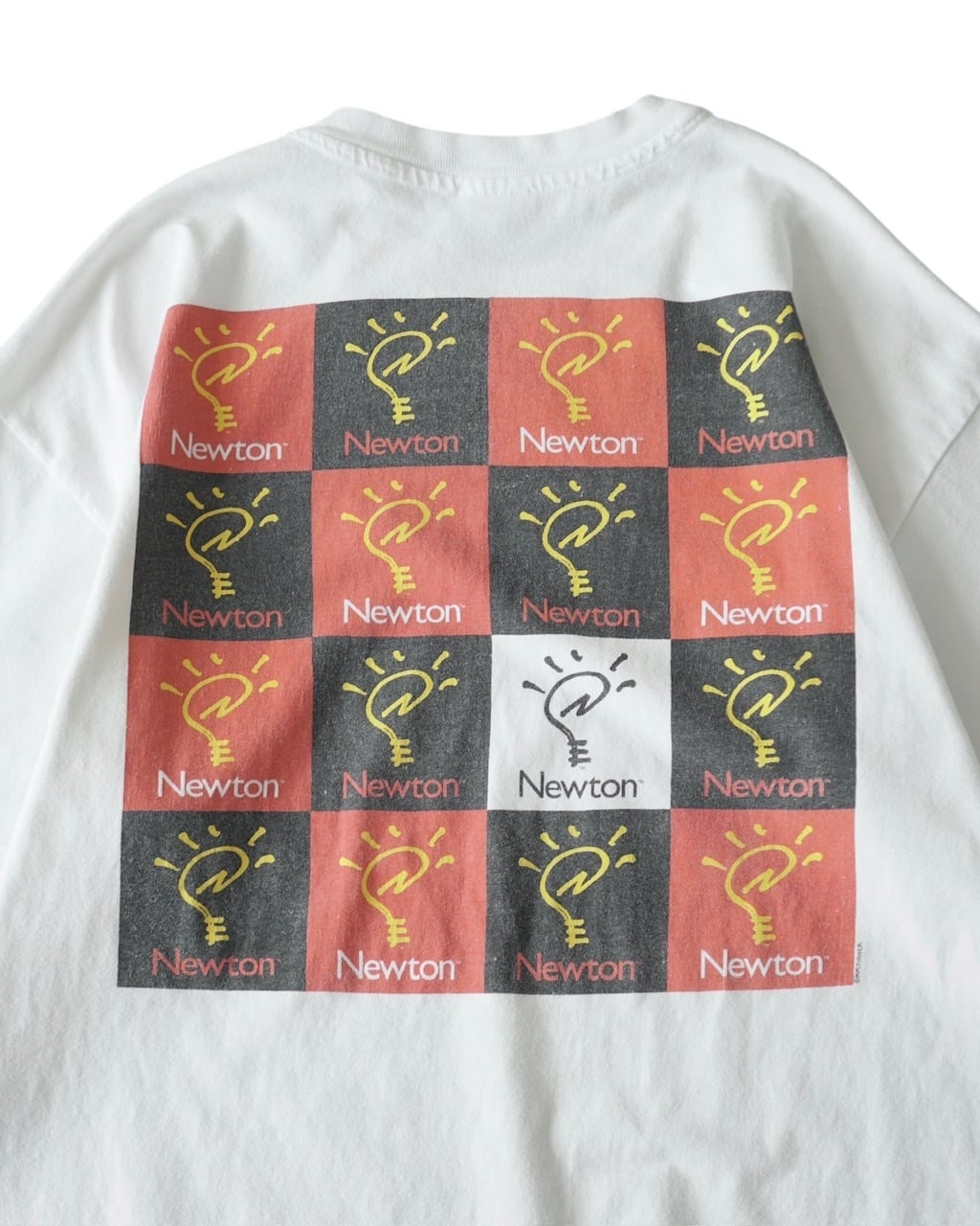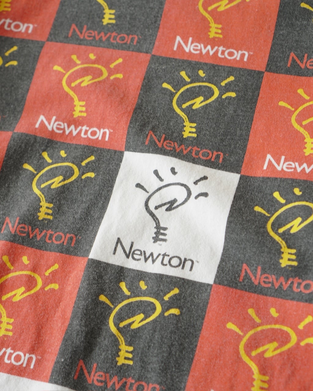 90年代初頭、Appleが展開していた「Newton」の一枚。iPhoneの前に持ち歩くコンピュータとして開発されましたが、時代に合わず成功しなかったシリーズです。Tシャツのどこにも Appleのロゴが入らない通なデザイン。
